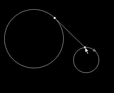 Then move the mouse cursor on the second circle / arc; a triangle will appear at the nearest point of tangency. This triangle will change places depending on the position of the mouse.