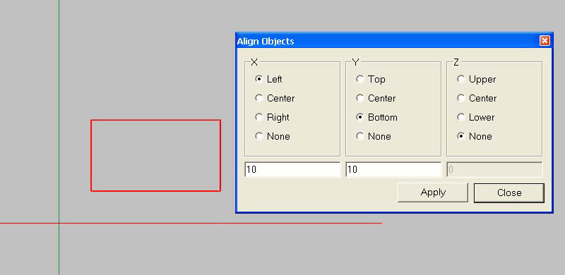 In this above example, the left most side of the rectangle is aligned to X=10 and the bottom part of the rectangle is aligned to Y=10. The Z location of the rectangle will remain unchanged.