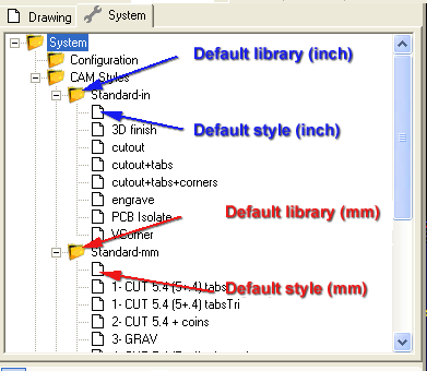 Warning: The default styles are very important for CamBam to function correctly and should not be renamed or removed.