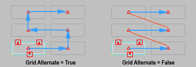 If Grid Alternate is set to True, the grid will alternate the direction of each row or column (depending on Grid Order). If False then each row or column will proceed in the same direction, with a rapid back to the start of each.