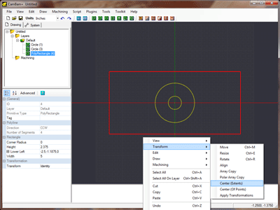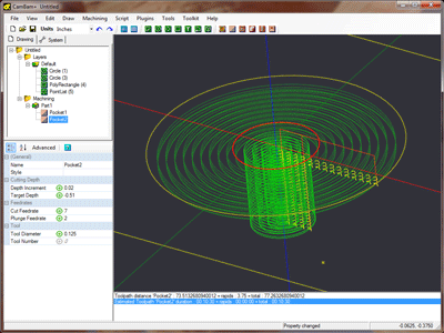 The basic work flow for generating CAM files in CamBam is to first draw or load in drawing objects, then insert machining operations based on these geometric objects and finally generate gcode files.