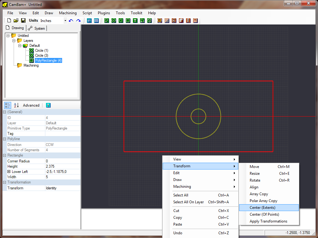 properties to both be 1.856. Select the rectangle and center it (Right click, Edit - Transform - Center (Extents) ).