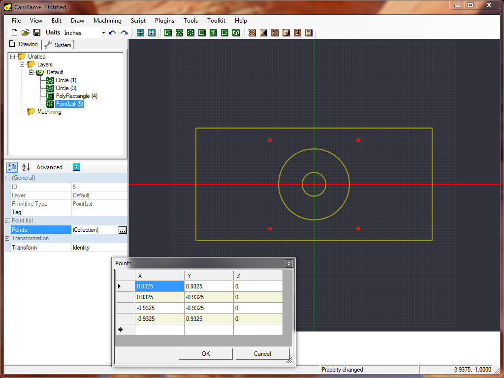 A PointList object will have been created in the drawing tree and it’s properties will be visible in the object property window.