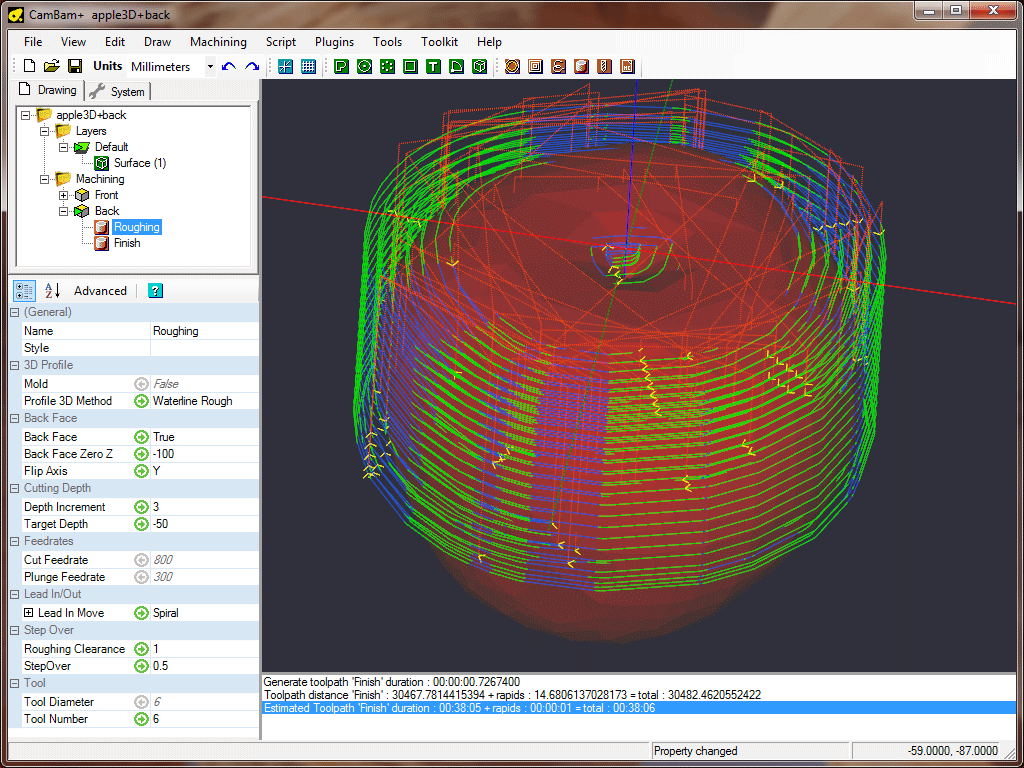 In this example, the table surface Z=0 is used, so the model is rotated about Z=0 to machine the back face. |