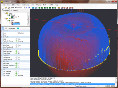Once the bulk of the material has been cleared by roughing, a scanline finishing pass can be applied. Select the 3D surface and insert a second 3D Profile operation.