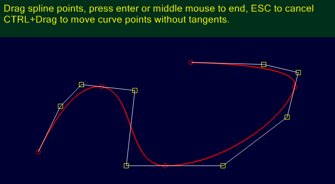 The splines are drawn with the mouse, making a left click to place the points of inflection.