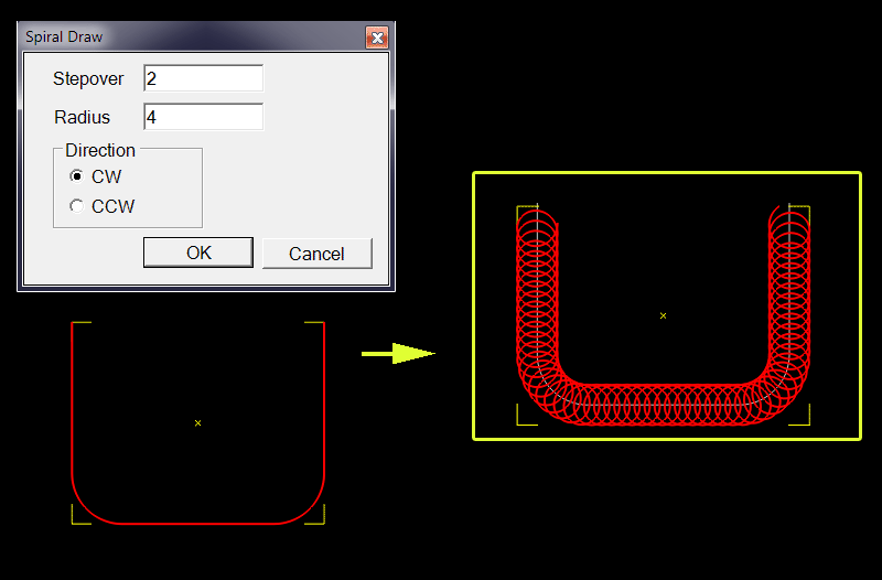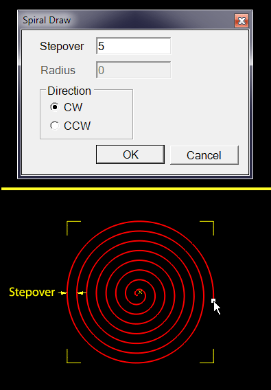 After filling in these two informations, draw the spiral starting at the center and then defining the radius (as if to draw a circle)