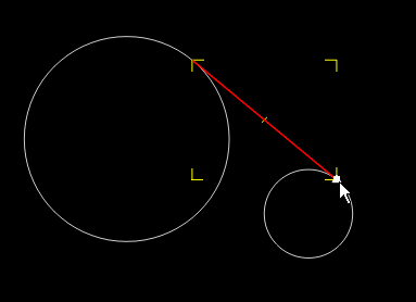 Then move the mouse cursor on the second circle / arc; a triangle will appear at the nearest point of tangency. This triangle will change places depending on the position of the mouse.