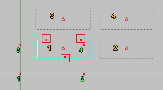 The default coordinates of the nesting system are at the drawing origin, (at the center of the X and Y axes), unless an alternative Machining Origin has been set (shown by a small red cross), either on the Part or Machining options.