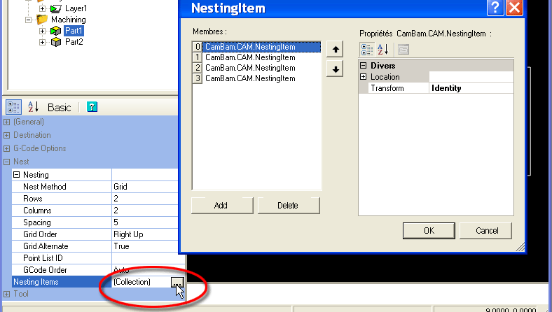 You can also edit the location of copies, delete or add, modify the order in which they will be machined using the Nesting Item collection editor.