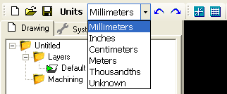 The current drawing’s units can be changed from the drop down list on the toolbar.
