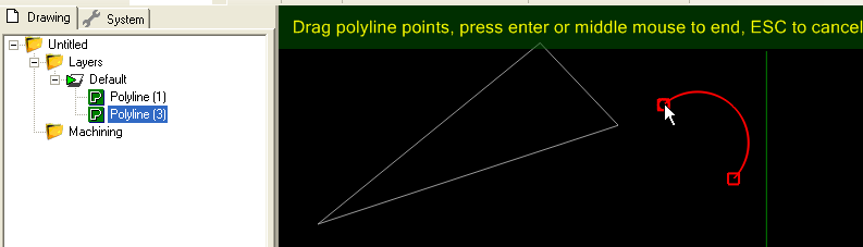The polyline edit mode can also be entered by double clicking a polyline in the drawing view.