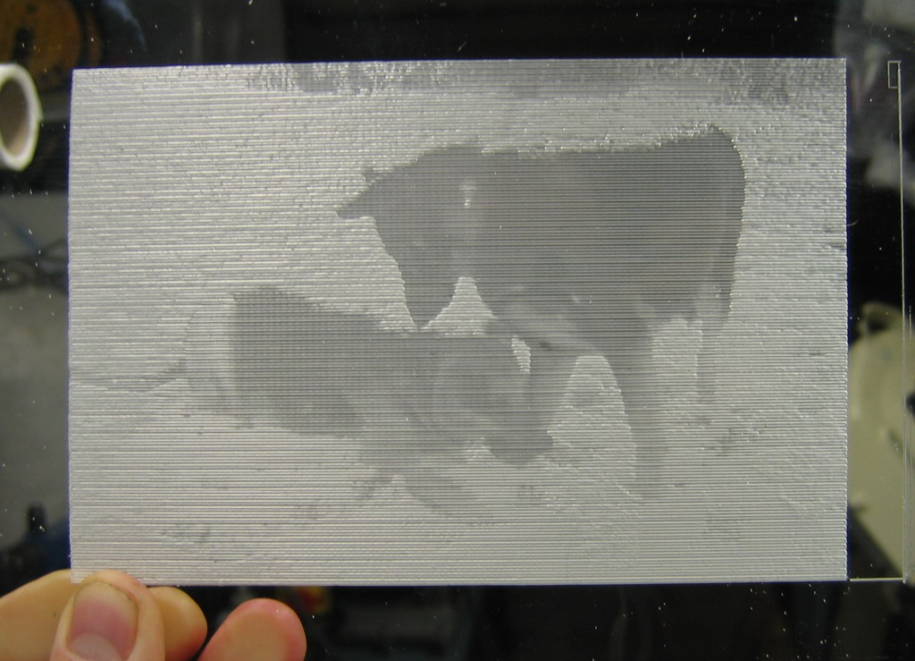 A lithopane is another variation on this theme, where an image is engraved into a thick translucent material and viewed with back lighting. Lithopanes are typically inverted with the deeper cuts